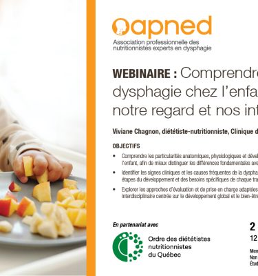 Webinaire 2 décembre 2025 – Comprendre la dysphagie chez l’enfant : adapter notre regard et nos interventions